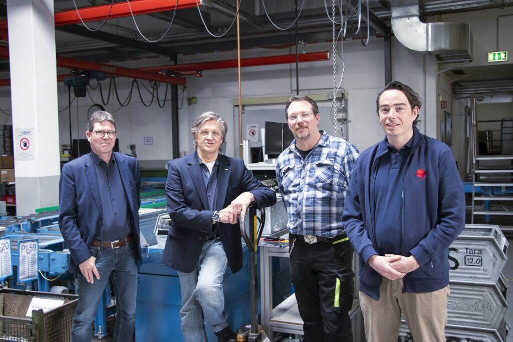 Konnten gemeinsam das Upgrade von Viadat 5.4 auf Viadat 9.3 reibungslos realisieren: Von WSS Robin Fasel, Geschäftsführer, Guido Lücker, Sprecher der Geschäftsführung, und André Pircher, Key-User, sowie Mario Schütz, IT Project Manager bei Viastore (v.l.n.r.)